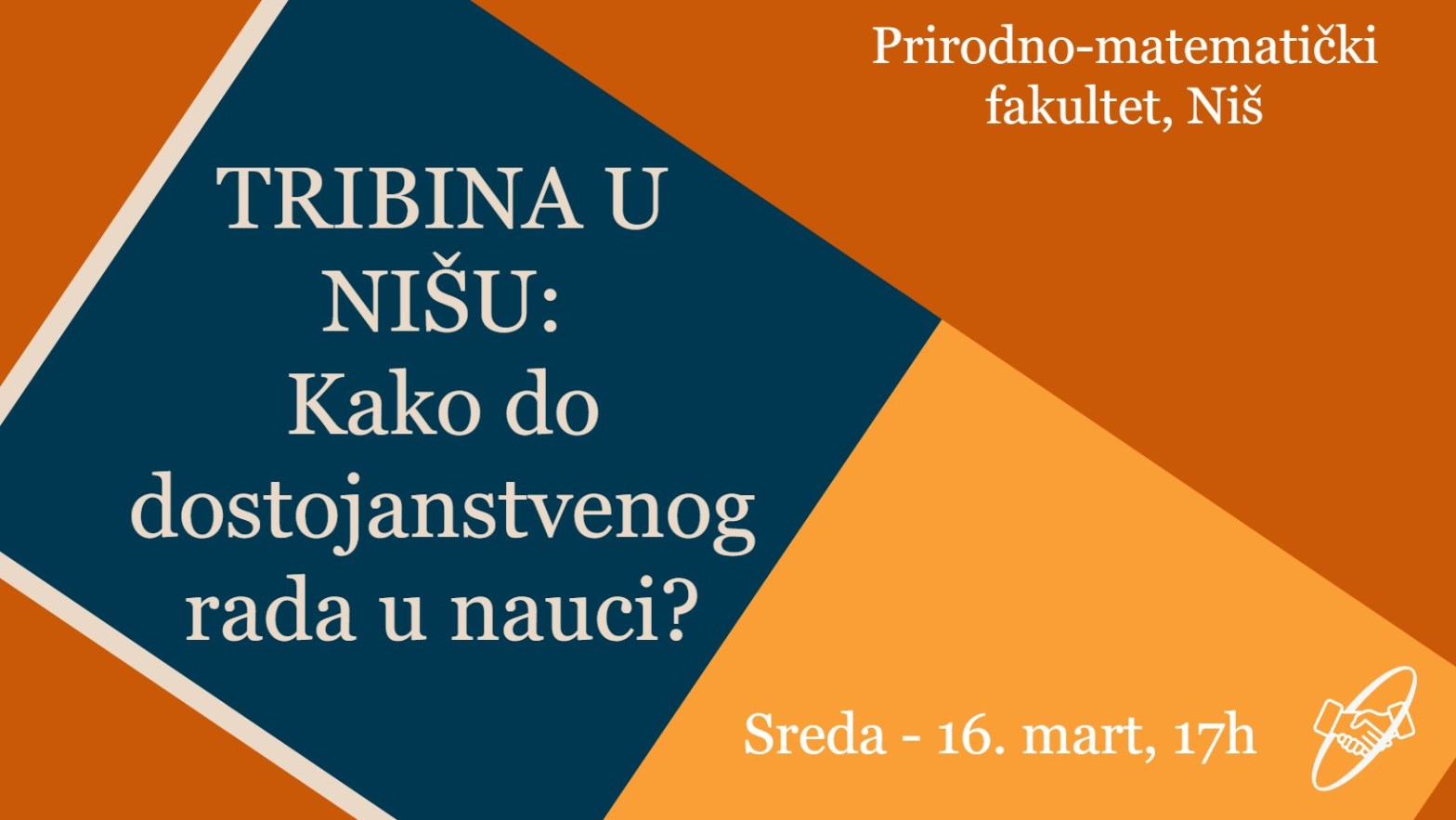 Amfitetar Prirodno-matematičkog fakulteta Nišu, sreda 16. mart, 17h Veliko nam je zadovojstvo što ćemo razgovor koji je otpočet na prošloj tribini u Beogradu sada nastaviti sa koleginicama i kolegama u Nišu.Već deset godina, naučni radnici i radnice u Srbiji dobijaju plate na osnovu kategorizacije čiji je vek trajanja istekao, što u praksi znači da razlikeContinue reading “TRIBINA U NIŠU: Kako do dostojanstvenog rada u nauci?”